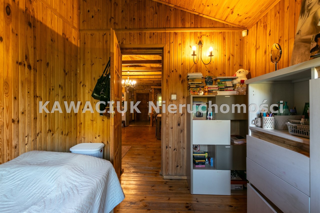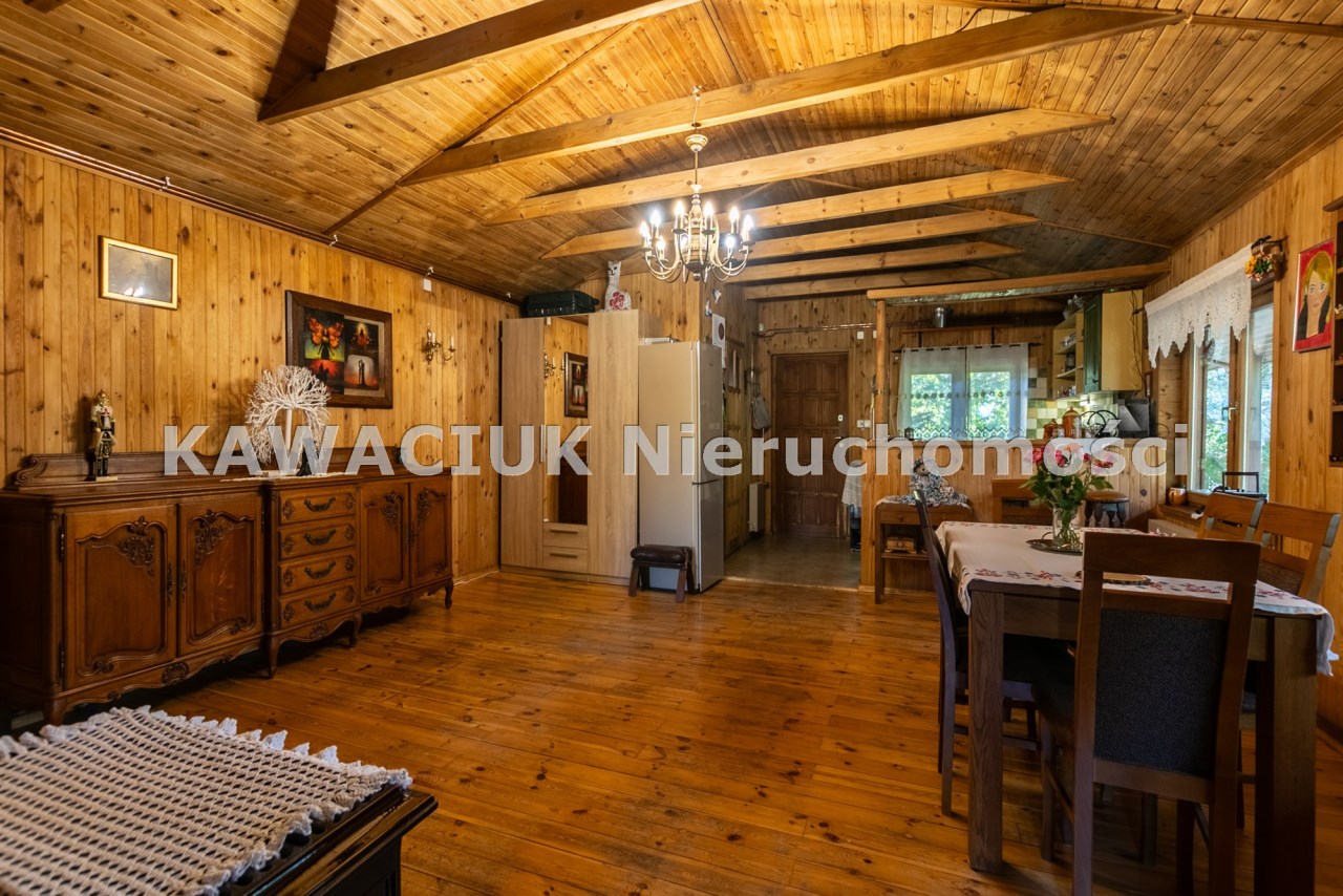 Na sprzedaż parterowy, drewniany dom o powierzchni 85 m², położony na zadbanej działce o powierzchni 1493 m². Nieruchomość objęta jest całodobową ochroną, co zapewnia spokój i bezpieczeństwo mieszkańców.