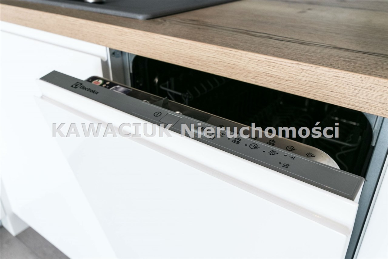 Kuchnia wyposażona w kompletny sprzęt AGD ( zmywarka, płyta indukcyjna, piekarnik elektryczny, lodówko-zamrażarka w zabudowie ) oraz drobne wyposażenie takie jak czajnik elektryczny, toster, sztućce, garnki, porcelana stołowa).
