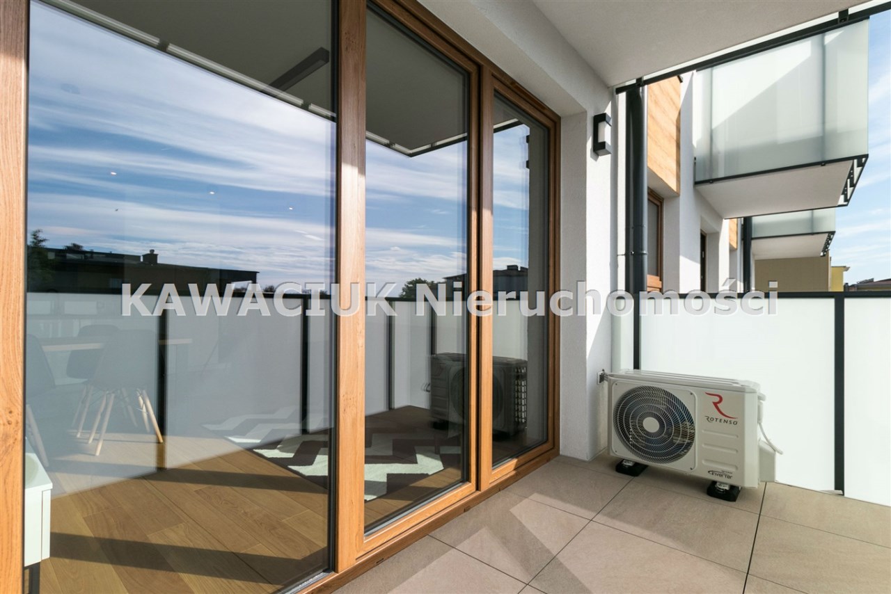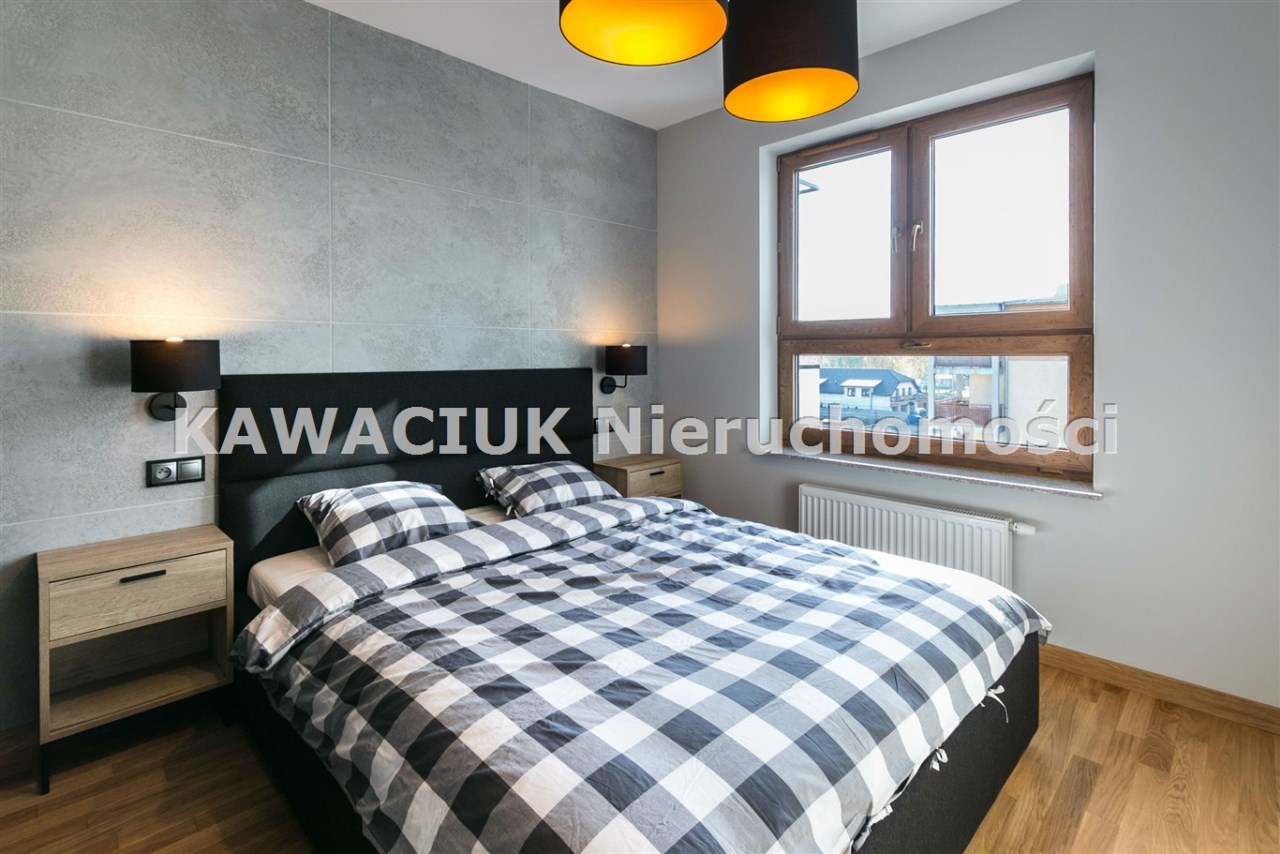 Na podłogach w pokojach położono drewniany parkiet, zaś w aneksie kuchennym, przedpokoju i łazience gres.Wysokiej jakości drzwi wewnętrzne doskonale komponują się z pozostałymi elementami.