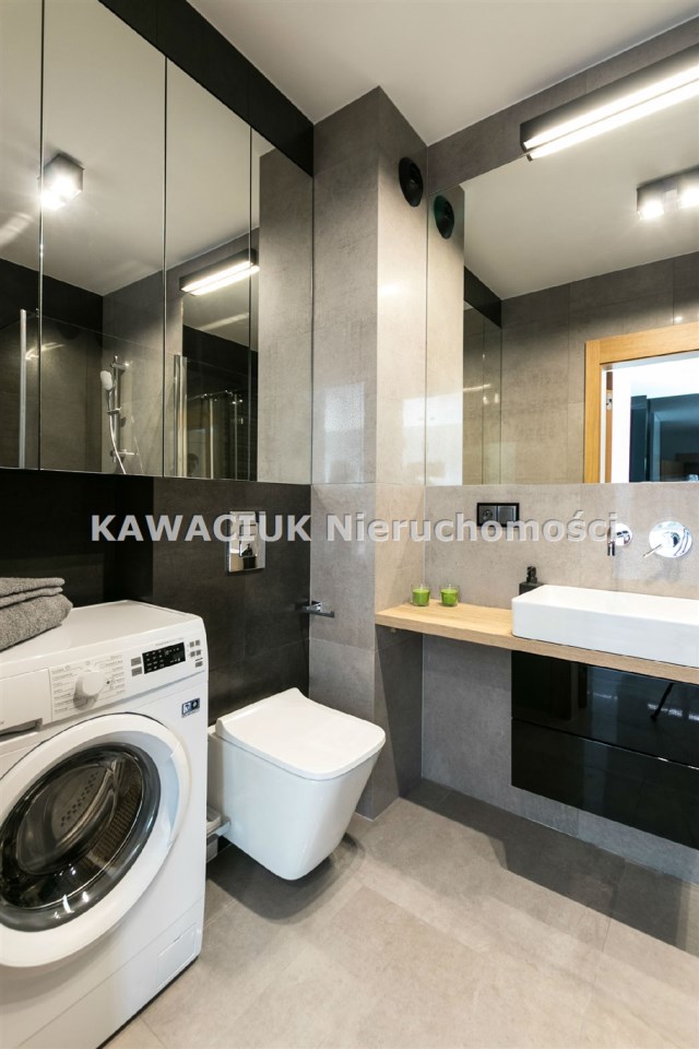 Mieszkanie jest starannie wykończone z wykorzystaniem wysokiej klasy materiałów a poszczególne elementy tworzą spójną całość.